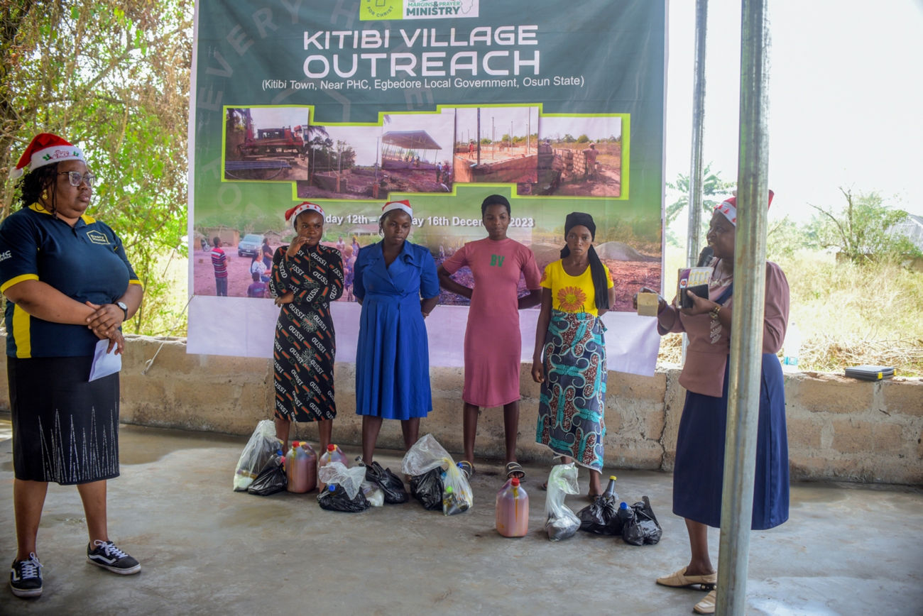 Toward the official commissioning of the borehole and official opening of the facility built for fellowship which was attended by the Chiefs sent as representatives from the king under whose domain is Kitibi village, we organised a 2-day empowerment programme for Kitibi village and also invited the surrounding villages after which some of the participants who showed prospects during the training were empowered to put to practice what they have learned and we received reports that some of them are already practicing with the skills they acquired and making some income to support themselves and their families.