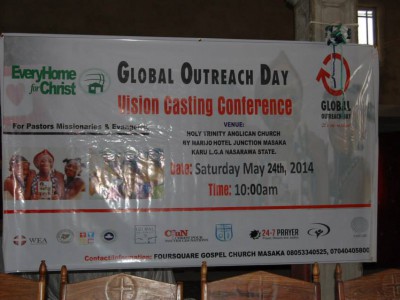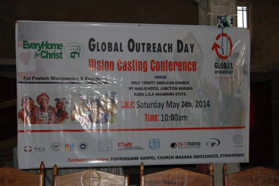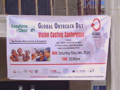 Nasarawa G.O.D Vision Casting Conference May 24, 2014 by System Admin Global Outreach Day , Vision Casting Conference and Training No Comment Nasarawa G.O.D Vision Casting Conference Venue: Holy Trinity Anglican Church Karu LGA Nasarawa State